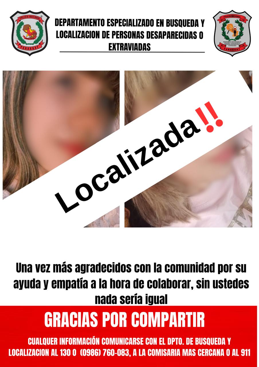 En una rápida y efectiva intervención policial, se logró localizar a una adolescente de apenas 13 años de edad. La joven fue encontrada en la intersección de las calles Mburucuya y Samuhu, en el barrio San Pablo, en la ciudad de Asunción.