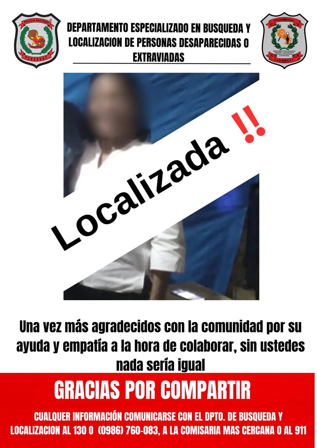 En la ciudad de Asunción, se llevó a cabo una efectiva operación policial que resultó en la localización de una mujer de 55 años. Este suceso tuvo lugar cerca de la intersección de la calle Eusebio Ayala y Luis Morquio, en el barrio Pinoza. La rápida acción de las autoridades fue determinante en la resolución del caso.